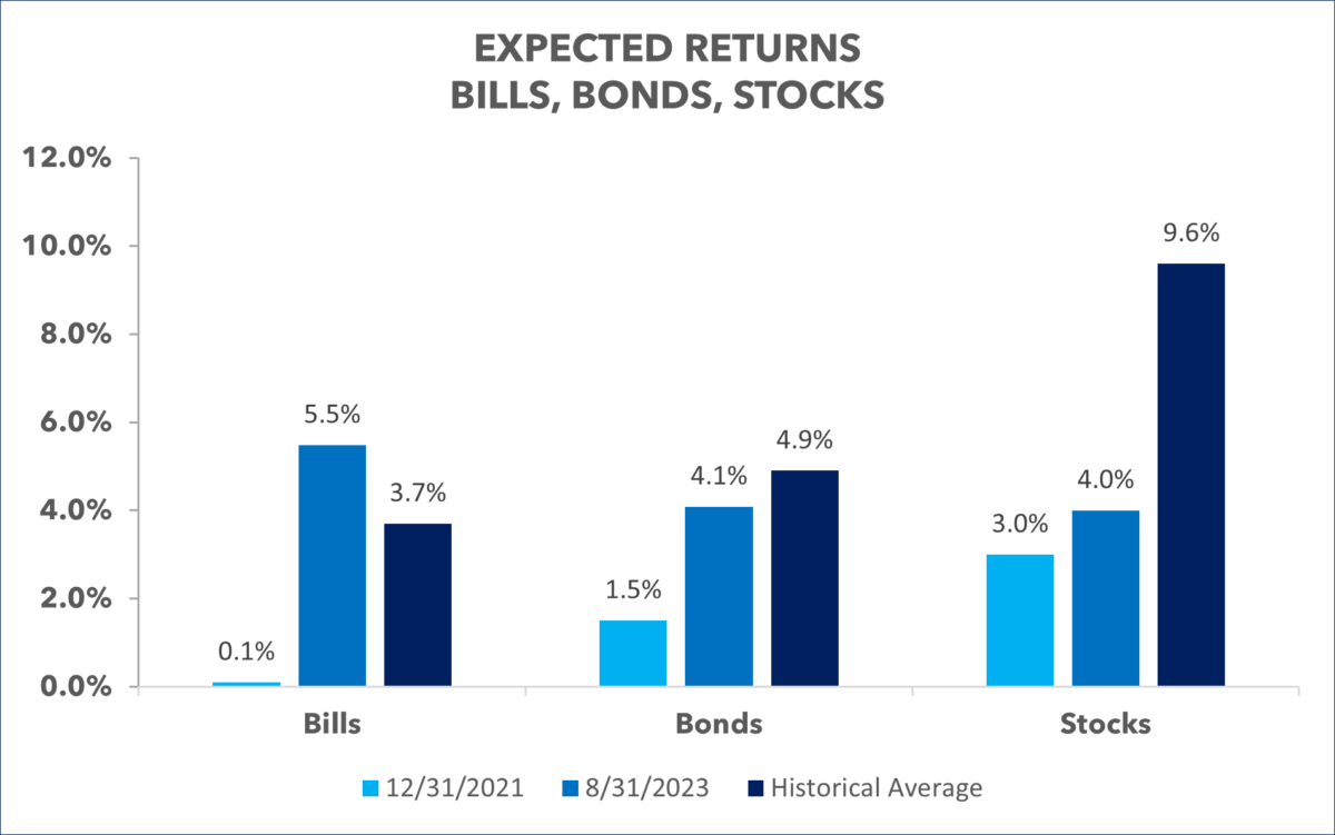 In less than two years, 3-month US Treasury yields rose considerably. As we write, they pay 5.5%. Especially for being the closest instrument to risk free in the market, 5.5% is a great return. Further, it is substantially above its historical average. Cash is, once again, king.